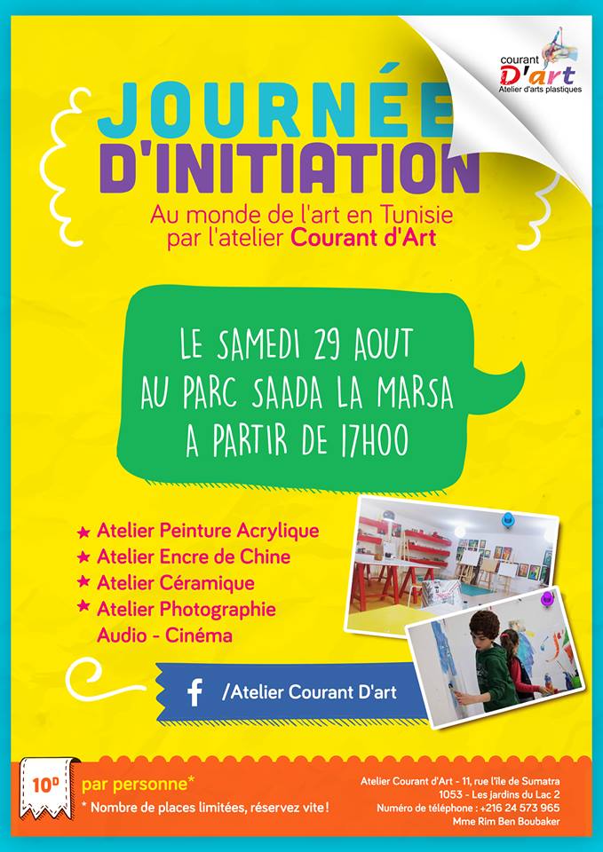 Journée exceptionnelle d’initiation au monde de l’art en Tunisie par l’atelier Courant d’Art. Pour les adultes & les enfants ! Les ateliers seront assurés par des ressources diplômées de la fameuse école des beaux arts en Tunisie.