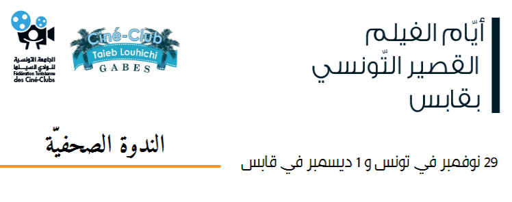 Nous avons le plaisir de vous convier à la conférence de presse organisée par la Fédération tunisienne des ciné-clubs , au sujet de la 4ème édition du festival « Journée du Court-Métrage Tunisien » de Gabes, et qui aura lieu Mardi le 29 Décembre 2016 à 11h du matin au siège de la Fédération Tunisienne des Ciné-Clubs à son adresse 49 avenue de Paris Tunis