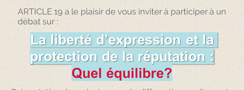 ARTICLE 19 a le plaisir de vous inviter à participer à un débat sur : La liberté d’expression et la protection de la réputation :Quel équilibre?
