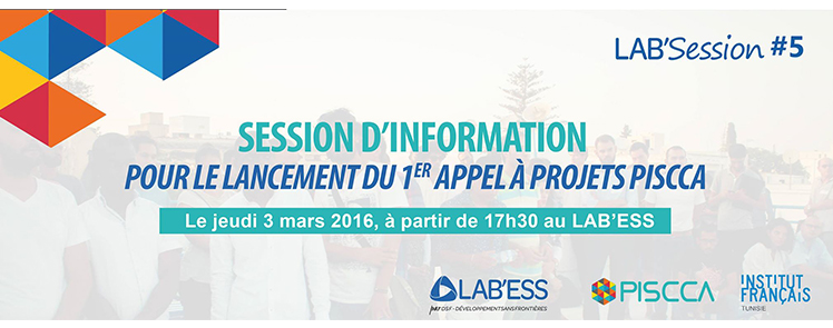 L’Institut Français de Tunisie et le LAB’ESS – Laboratoire de l’Economie Sociale et Solidaire organisent le jeudi 3 mars 2016 une LAB’Session #5 afin de lancer et présenter le nouvel instrument de financement des organisations de la société civile tunisienne de l’IFT: le PISCCA.