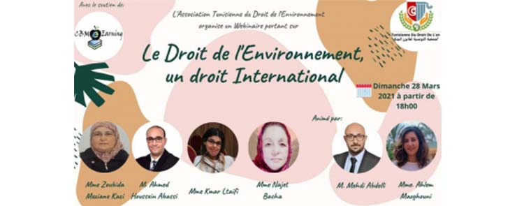 l’Association Tunisienne du Droit de l’Environnement a l’immense plaisir de vous inviter au webinaire « Le droit de l’Environnement, un droit International » qui va être animé par: