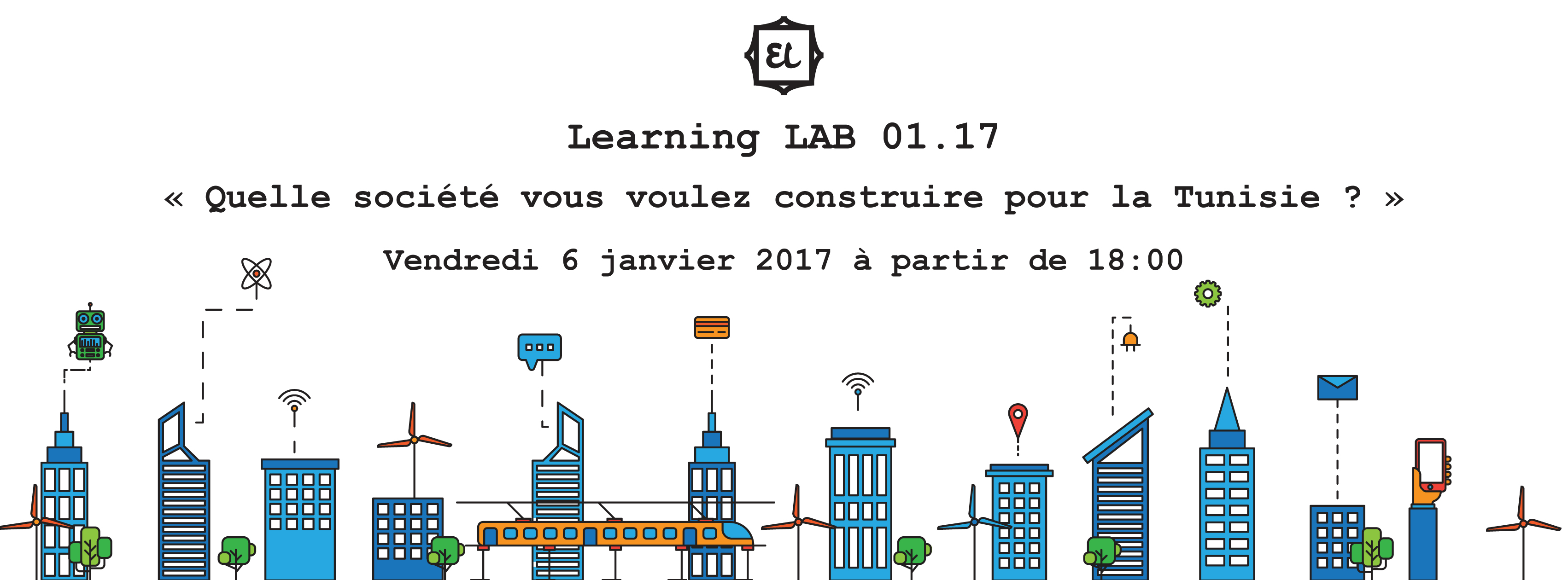 Nos Learning Labs de 2017 vont présenter pour la société tunisienne les jeunes penseurs du futur.Chaque personne aura l’opportunité de se présenter et de répondre à la question ‘ quel genre de société vous voulez créer en Tunisie?’ Et chaque réunion va associer le théorique et le pragmatique à l’expérimental.Ceci va bien sûr engager un nombre de professionnels , d’étudiants , des citoyens , des chercheurs et des organisations existantes aux différentes disciplines et donner aux jeunes l’espace où ils vont présenter leurs visions.