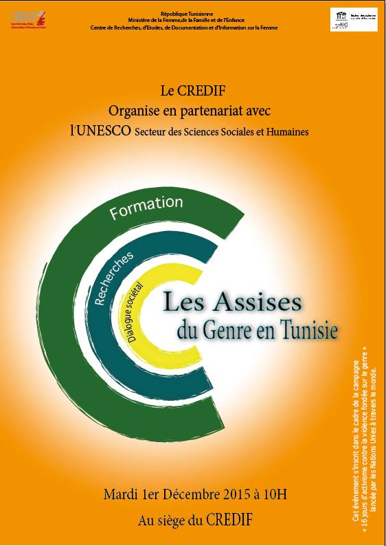 Dans le cadre de leur partenariat, le CREDIF et l’UNESCO – Secteur des Sciences Sociales et Humaines- ont le plaisir de vous inviter aux premières « Assises du Genre » en Tunisie, le 1er décembre 2015, au Siège du CREDIF.