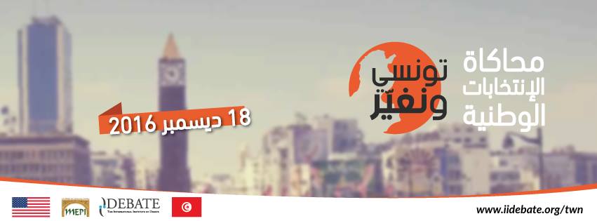 L’Institut international de débats IIDebate – avec le soutien du Programme MEPI organis les élections nationales dans le cadre du projet « Tounsi W Nghayer  » qui aura lieu le dimanche 18 Décembre, 2016 à l’hôtel Golden Tulip Mechtel à Tunis de 10:00 à 13:00 de l’après-midi.