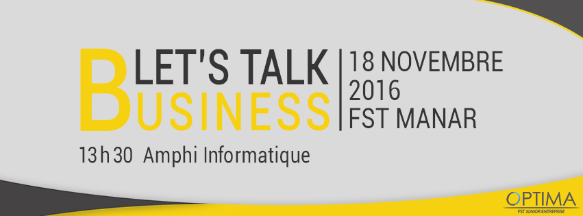 A l’occasion de la Semaine Mondiale de l’entrepreneuriat, OPTIMA, la Junior Entreprise de la Faculté des Sciences de Tunis, organise une conférence intitulée « Let’s Talk Business ».