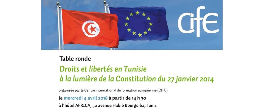 Table ronde pour faire l’état des lieux des droits et libertés en Tunisie à la lumière de la Constitution du 27 janvier 2014, avec la présence des Députés Tunisiens et Européens, des représentants de la société civile et des chercheurs du Centre International de Formation Européenne