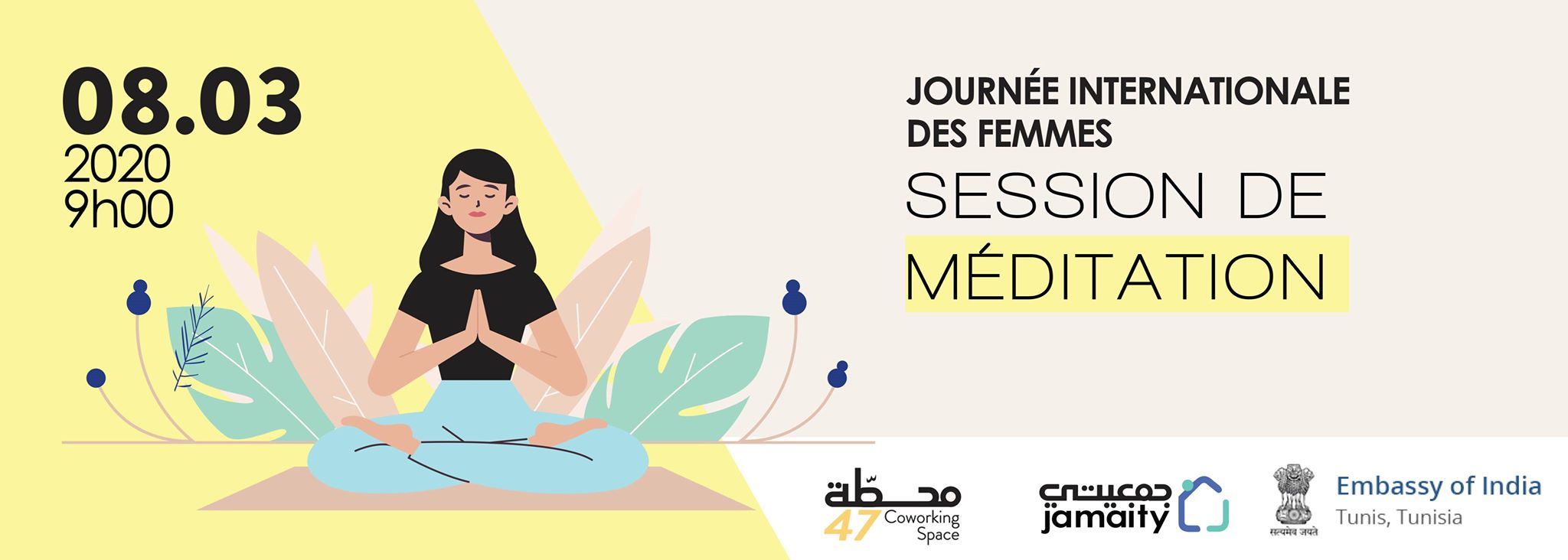 Dans le cadre de la Journée internationale des femmes, la station 47 organise une session de méditation en partenariat avec l’ambassade de l’inde en Tunisie pour célébrer les libertés et se libérer et se reconnecter à son être profond.