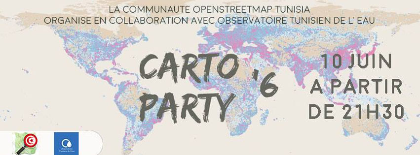 La communauté OpenStreetMap Tunisia et l’Observatoire Tunisien de l’Eau-المرصد التونسي للمياه vous invitent à une #CartoParty samedi 10 juin à partir de 21h30 au local de l’association Nomad08 pour découvrir et participer à la cartographie sur #OpenStreetMap.