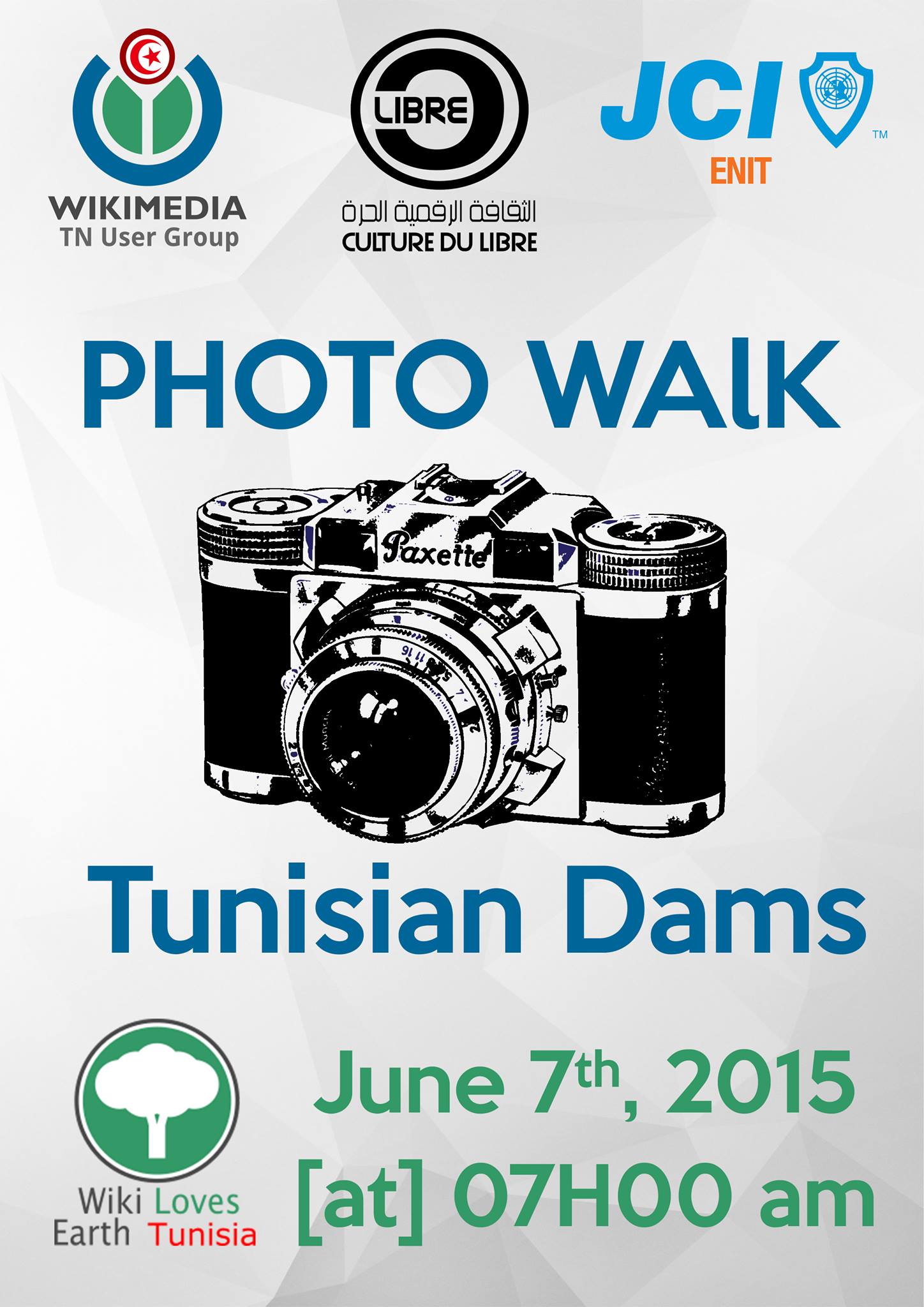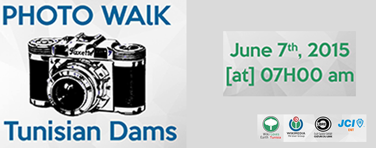 Suite à l’extension du concours wiki loves earth Tunisia jusqu’à 15 juin 2015 « Wikimedia TN User Group » en collaboration avec La Jeune Chambre Internationale de l’École Nationale d’Ingénieurs de Tunis JCI ENIT et l’Association pour la Culture numérique Libre CLibre.tn organisent, dans le cadre de l’action « Wiki loves Earth Tunisia 2015 » une sortie de photos vers les barrages Tunisiens . L’invitation est ouverte pour tous photographes Professionnels ou amateurs. Cette compétition vise à promouvoir la splendeur des sites naturels régionaux de notre pays.