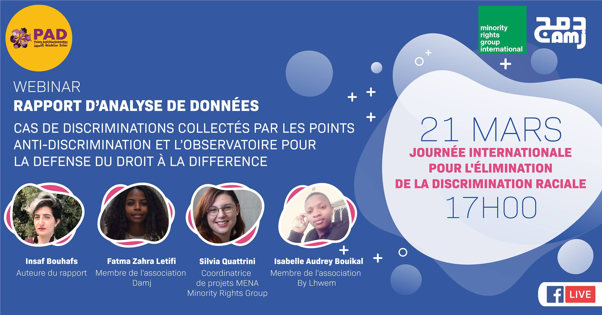À l’occasion de la journée internationale de lutte contre la discrimination raciale le 21 mars, l’équipe du projet Points Anti-Discrimination (PAD) vous invite au webinaire de présentation du rapport d’analyse de données collectées par les Points Anti-Discrimination et l’Observatoire pour la Défense du droit à la Différence (O3DT) en 2020.
