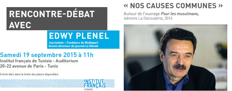 L’Institut français de Tunisie a le plaisir de vous inviter, le 19 septembre à 11h, à une recontre-débat avec Edwy Plenel autour de son ouvrage Pour les musulmans. Cette première rencontre de la rentrée est placée sous le thème « Nos causes communes ».
