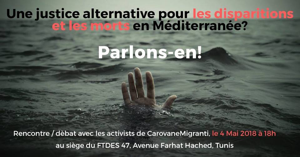 Le groupe CarovaneMigranti est un groupe antiraciste qui organise chaque année une caravane sur le sujet des migrations, de la violence et du racisme des politiques migratoires de l’UE dans plusieurs villes et réalités d’Italie en se concentrant sur le problème de la disparition et de la mort des migrants. Se faisant, le groupe relie la situation de la Méditerranée et des politiques migratoires de l’UE aux pratiques de violence et aux diverses formes de disparition dans certains États d’Amérique centrale. Au cours de ces voyages, CarovaneMigranti accueille des témoins de ces réalités qui luttent pour essayer d’établir la vérité sur la disparition, la mort et le meurtre de leurs proches. Cette année, du 28 avril au 6 mai, CarovaneMigranti, avec des activistes indépendants et l’Association tunisienne « La Terre pour Tous », se rendra dans plusieurs villes de Tunisie pour rencontrer les familles des migrants disparus et morts dans la Méditerranée.