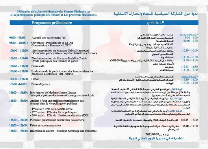 Séminaire « Participation politique de la femme et les processus électoraux » عودة إلى الأجندة