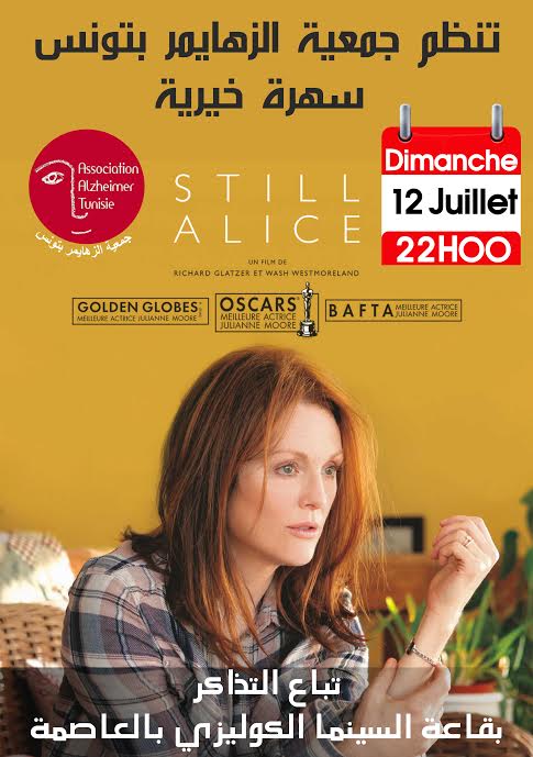 Nous avons le plaisir de vous annoncer une avant-première de Still Alice, réalisée en collaboration avec Association Alzheimer Tunisie (AAT)