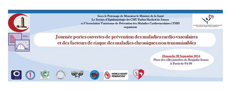 L’Associa-Med, sous l’égide de ses deux bureaux locaux de Monastir et Sousse, en collaboration avec la Tunisian Heart Foundation, le service d’épidémiologie Farhat Hached de Sousse, L’association des professeurs de Sciences de la vie et de la Terre, la direction régionale de la santé de Sousse, L’association Recherche Information Cancer et le réseau Critical Mass, ont le plaisir de vous inviter au Symposium international pour la prévention des maladies non transmissibles, dans le cadre de la célébration de la journée mondiale du coeur, plus connue sous le nom de ‘World Heart Day’ célébrée le 28 Septembre de chaque année.