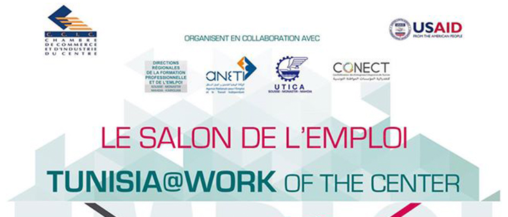 La Chambre du Commerce et de l’Industrie du Centre en collaboration avec USAID, les bureaux régionaux de l’Agence Nationale pour l’Emploi et le Travail Indépendant « ANETI »,  les Union régionales relevant de l’Union Tunisienne de l’Industrie, du Commerce et de l’Artisanat « UTICA » et les bureaux de la Confédération des Entreprises Citoyennes de Tunisie « CONECT » organisent la première édition de Tunisia @ work le 24 Février 2015 à l’hôtel Riadh Palms à Sousse à 9h.