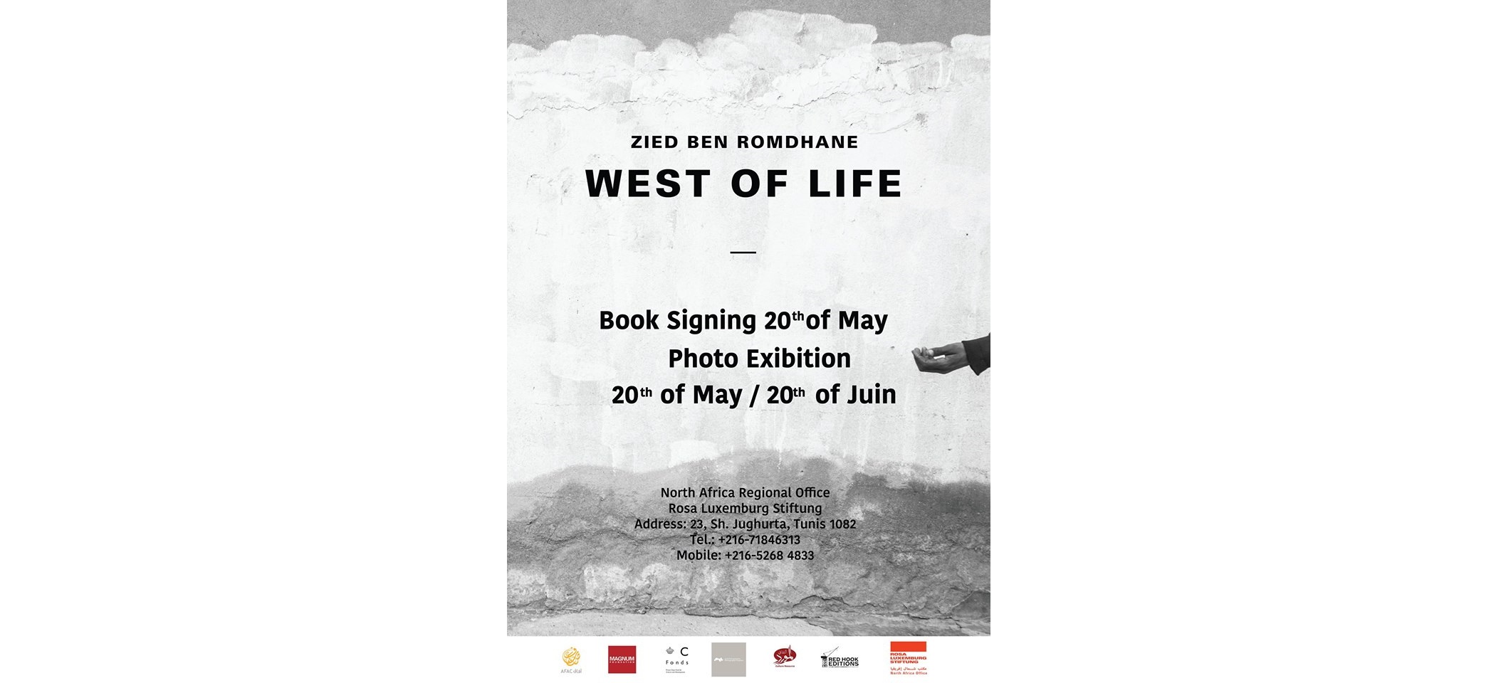 La Fondation Rosa Luxemburg a l’honneur de vous inviter au vernissage de l’exposition photographique et à la signature du livre « West Of Life » du photographe Zied Ben Ramdane le dimanche 20 Mai de 21h00 à minuit dans les locaux de la Fondation,