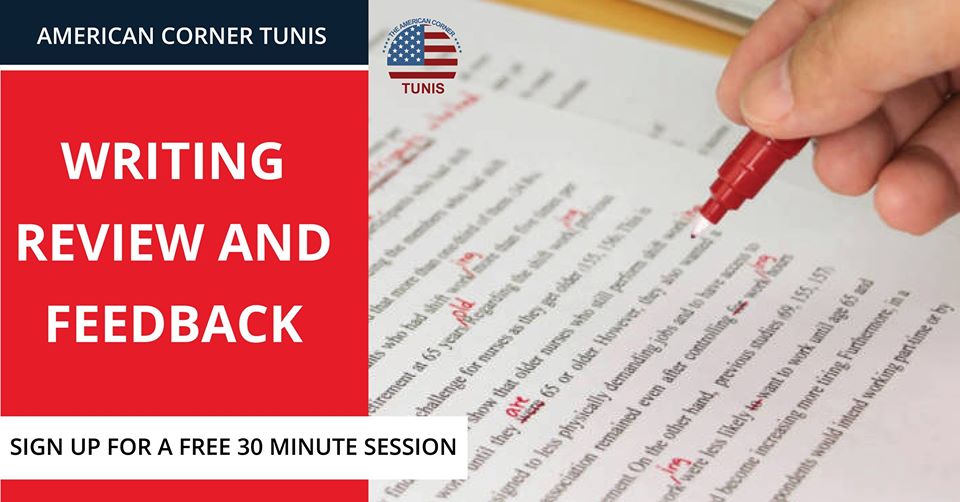 Sign up for a free 30-minute « Writing Review and Feedback » session to get your draft proofread with the writing tutor at the American Corner Tunis.