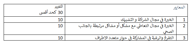تمثيل وتشريك المجتمع المدني في هذه الدورات التدريبية سيكون من خلال الجمعيات المختارة في إطار هذه الدعوة لتقديم الترشحات. وستستمر الدورات التدريبية على مدة تسعة أيام، خلال شهري جانفي وفيفري 2021، وستتبعها خلال شهر مارس 2021ورشات عمل لتحديد الاحتياجات في مجال الصحة