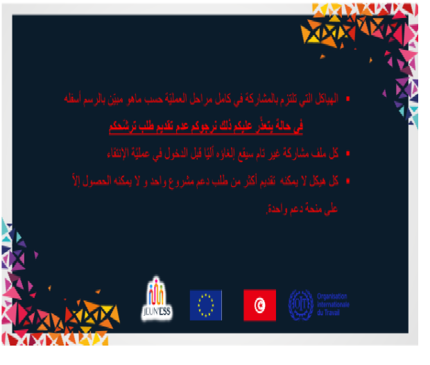 من أجل دعم قدرة هياكل مؤسسات الاقتصاد الاجتماعي و التضامني المتضرّرة من جائحة كوفيد-19 ( على الصمود ستتبع هاته الدعوة لتقديم الترشحات الخطوات التالية :