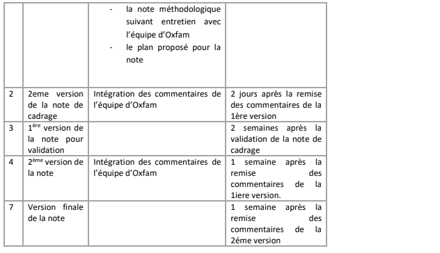 – Le périmètre de la recherche et la méthodologie seront discutés et convenus avec l’équipe Oxfam dès le commencement de la collaboration.