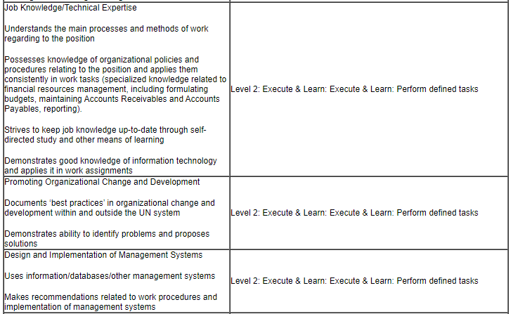 • Experience: 2 years of progressively responsible finance and accounting experience is required. Experience in the usage of computers and office software packages (MS Word, Excel, etc) and advance knowledge of spreadsheet and database packages, experience in handling of web based management systems and ERP financials, preferably PeopleSoft. Knowledge of IPSAS and/or IFRS desirable