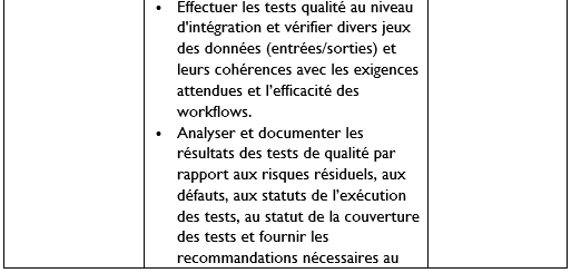 Ainsi, ils seront chargés d’exécuter nombreux types de tests de qualité au cours de ces phases, en particulier :