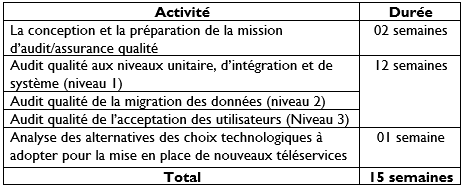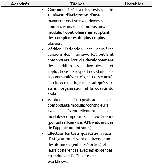 Les consultants en audit qualité logicielle formeront un groupe homogène (01 chef d’équipe et 02 collaborateurs), travailleront en équipe et seront responsables sans s’y limiter aux activités suivantes :