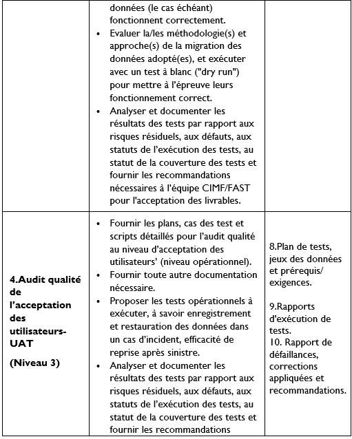 • Audit qualité de l’acceptation des utilisateurs-UAT (Niveau 3).