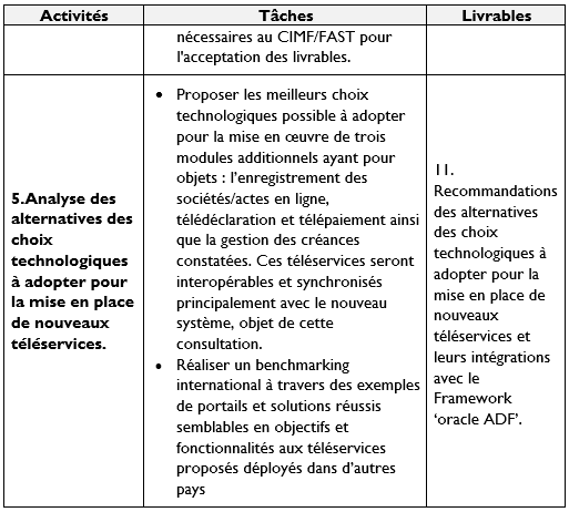 Les travaux menés dans cette mission proposeront également les meilleurs choix technologiques à adopter pour le développement des nouveaux téléservices planifiés dans une phase ultérieure.