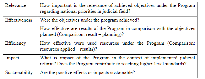Target population of the evaluation includes the groups participating in the program activities – lawyers, lawyers in training, judges and prosecutors, practicing judges and prosecutors, journalists, CSOs, as well as ABA/ROLI local staff and staff in Washington DC, partner governmental stakeholders, ISPA, TBA and YLA.