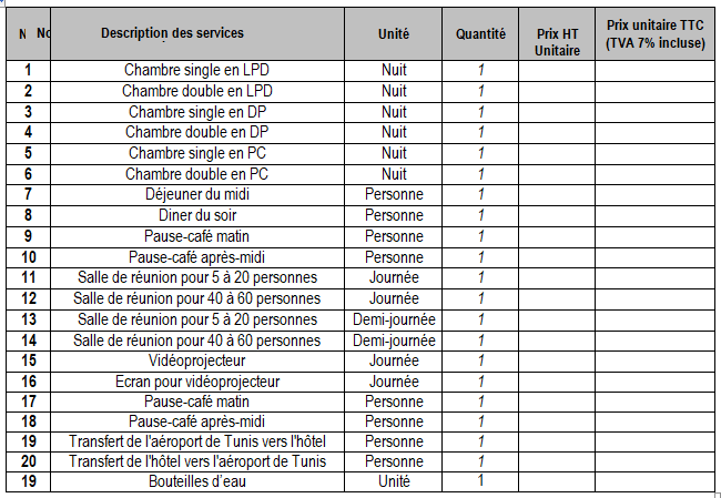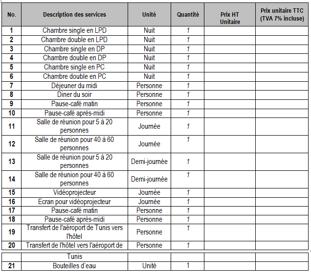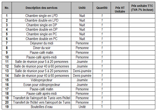 N°d’Appel d’Offres: T/1499/FWC-Services Hôteliers/TUN/23-04-2018