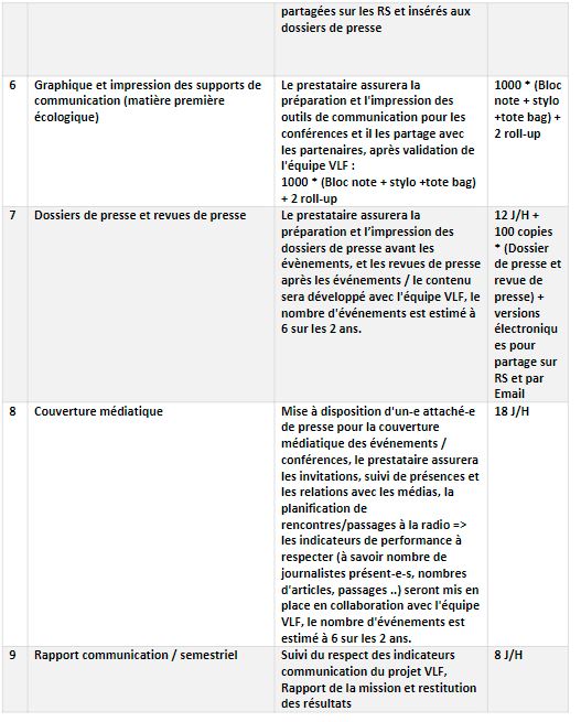 •Suivre le respect des indicateurs communication du projet VLF et des résultats atteints, un rapport semestriel sera demandé