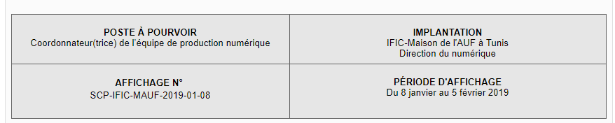 Agence Universitaire de la Francophonie recrute un(e) Coordonnateur(trice) de l’équipe de production numérique عودة إلى الفرص