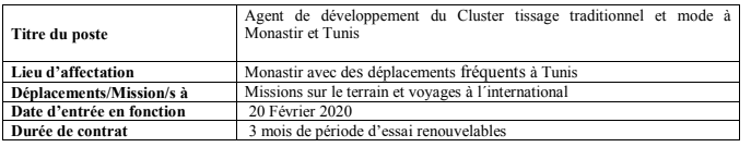 Agent de développement du Cluster tissage traditionnel et mode (Tunis & Monastir) – ONUDI Retour vers les opportunités