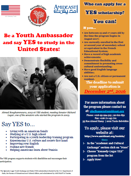 The Kennedy-Lugar Youth Exchange and Study (YES) program was established by Congress in October 2002 in response to the events of September 11, 2001. The program is funded through the U.S. Department of State and sponsored by the Bureau of Educational & Cultural Affairs (ECA) to provide scholarships for high school students from countries with significant Muslim populations to spend up to one academic year in the United States. Students live with host families, attend high school, engage in activities to learn about American society and values, acquire leadership skills, and help educate Americans about their countries and cultures. Starting in 2009, the YES Abroad program was established to provide a similar experience for U.S. students (15-18 years) to spend an academic year in select YES countries.