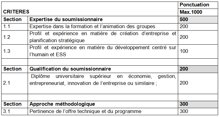 L’offre du consultant sera examinée en suivant les critères ci-dessous :