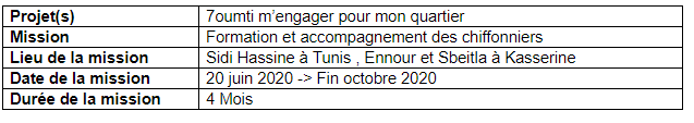 Financé par l’Agence Française de Développement, « 7oumti, m’engager pour mon quartier » est un projet qui traite la filière déchets et l’aménagement de l’espace publique, dans des quartiers précaires, en impliquant tous les acteurs dans une gestion communautaire participative tout en améliorant les conditions de travail pour les personnes engagés dans ces filières.