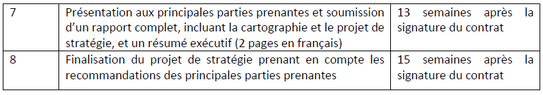 - Produire un rapport complet, reflétant les résultats de la cartographie et les présenter ainsi que le projet de stratégie aux principales parties prenantes dans le cadre d’une consultation nationale ;