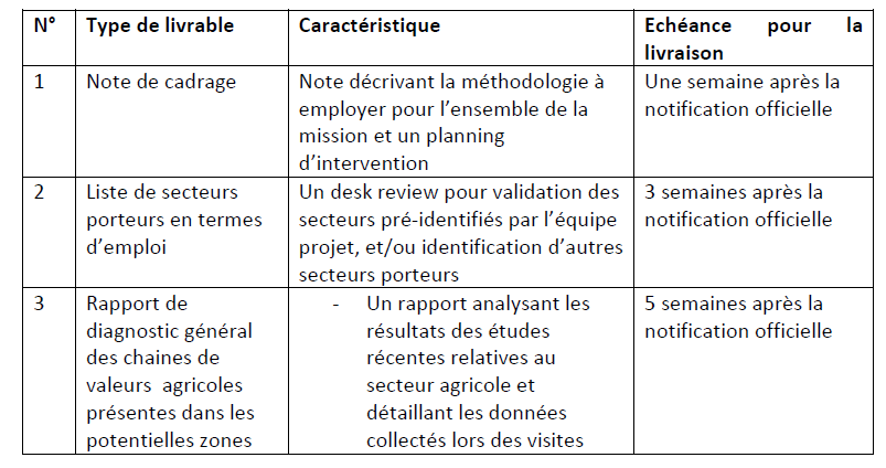 • réaliser un diagnostic et une analyse générale des chaines de valeurs (CV) agricoles présentes dans les potentielles zones d’intervention du projet