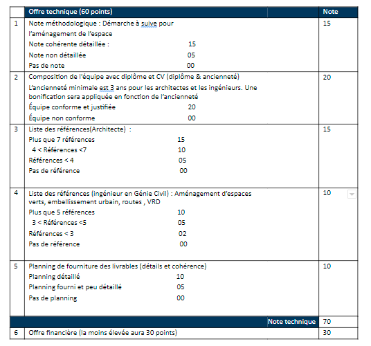 Il incombe aussi au bureau d’étude de prévoir dans sa présentation de l’offre un nombre de jour dédié au suivi de la mise en œuvre du projet et de l’entreprise des travaux qui sera sélectionné, ne dépassant en aucun cas 25 jours d’expertises.