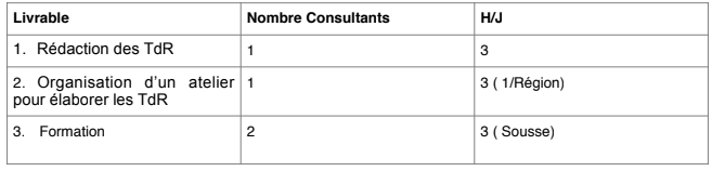 La réalisation de la présente mission s’étalera sur 20 jours, pour un total de 12 hommes-jours. Il est possible que le consultant chargé du lot 1 soit chargé du lot 2 en tant qu’un des deux formateurs.
