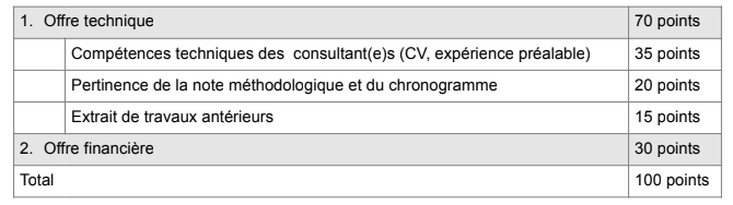 L’évaluation de l’offre se fera selon les critères suivants :