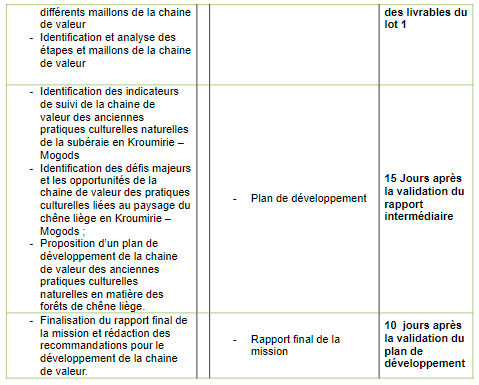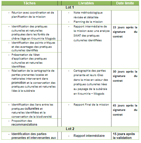 - Lot 2 : Étude de faisabilité des chaînes de valeur des anciennes pratiques culturelles et naturelles en matière des forêts de chêne liège et leur impact sur la biodiversité en Kroumirie –Mogods
