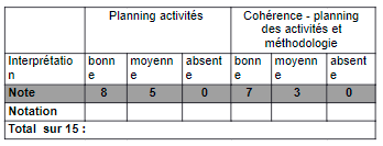 Cohérence entre le planning des activités et la méthodologie proposée, bonne moyenne et absente (7 points)