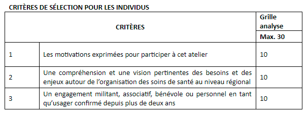 Une sélection parmi les candidats aura lieu entre le 29 et 30 septembre sur la base des critères ci-après.