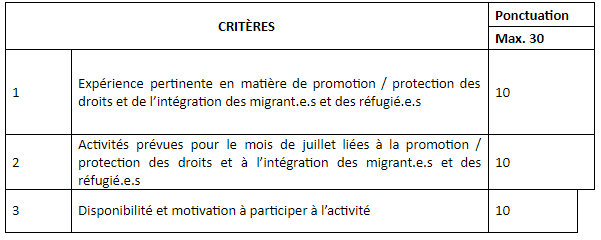 Une sélection des entités intéressées aura lieu le 21 juin 2021 sur la base des critères ci-après.