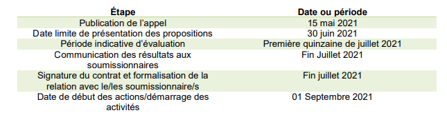 2. Objectif de l’appel à propositions :