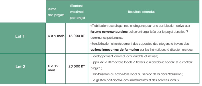 > Les projets portés par des associations ayant une expérience spécifique dans les 7 communes partenaires (Bouarada, Bouzguem, Chrayaa-Ma chrek-chams,El Krib, Neber, Regueb et Sisseb-Dhriaat) seront avantagés.