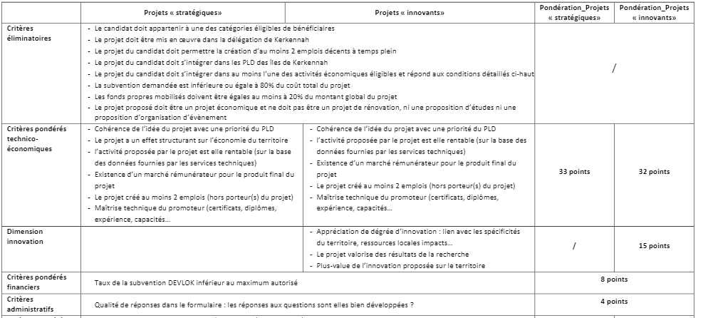 Toute activité stratégique ou innovante qui s’intègre dans les secteurs suivants: agriculture, agroalimentaire, aquaculture, services liés à l’agriculture et la pêche, artisanat, tourisme alternatif, environnement et toute autre activité économique stratégique/ innovant cohérente avec le PLD (le PLD est disponible sur la page officielle du projet « DEVLOK » sur Facebook), à condition que le projet proposé soit: